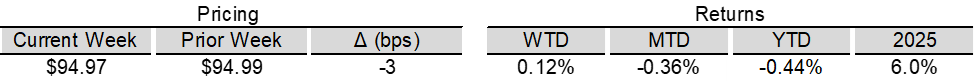 - (0.53%) WoW; (8.83%) YTD; (9.77%) YoY