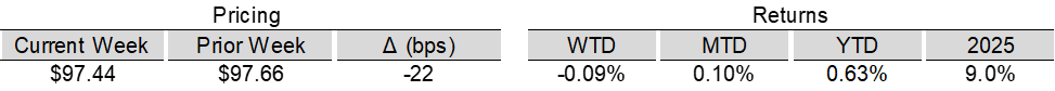- +1.00% WoW; (7.73%) YTD; (2.11%) YoY