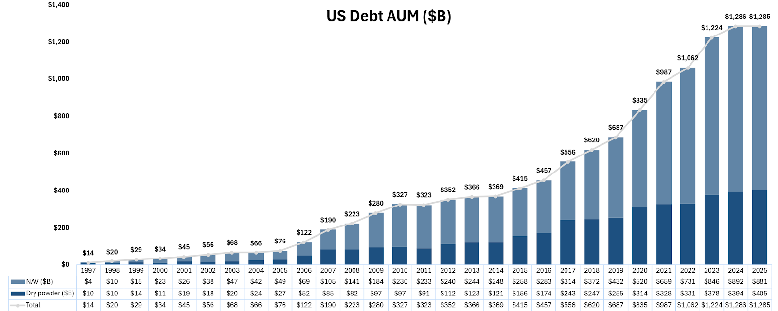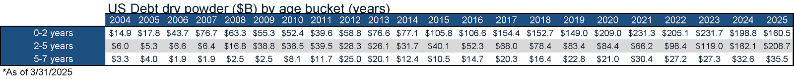 Diagram R: Dry Powder for All US Debt ($B)