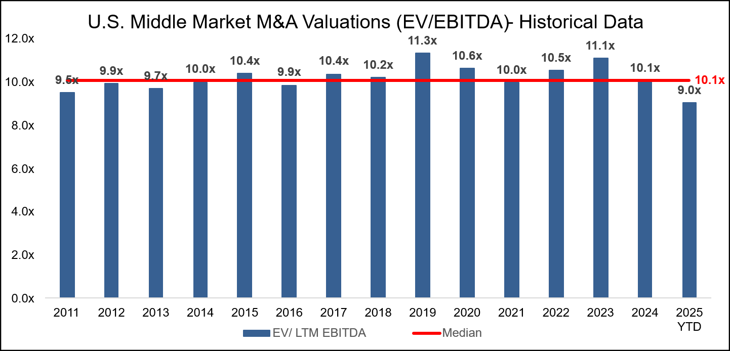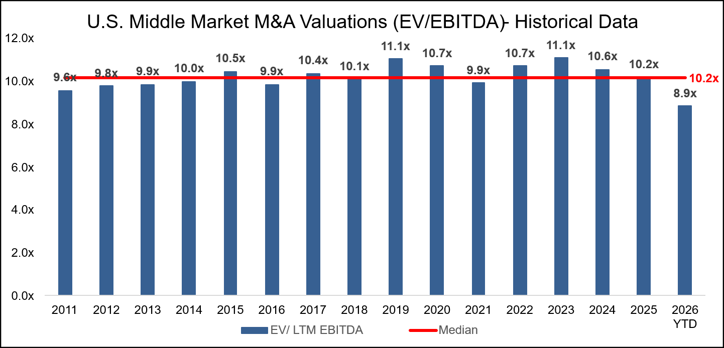 Diagram O: U.S. Middle-Market M&A Valuations (EV/EBITDA)
