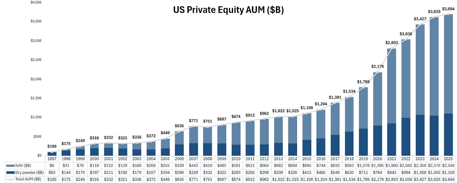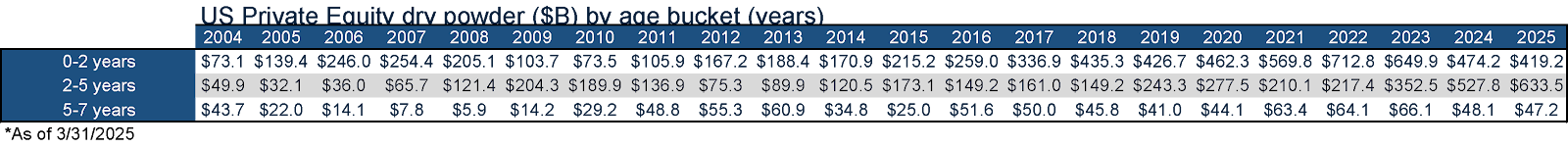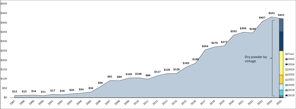 Diagram Q: Dry Powder for All Private Equity Buyouts ($B)