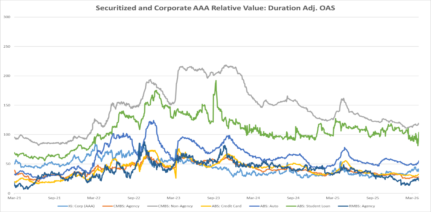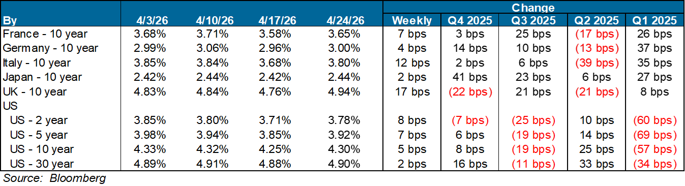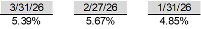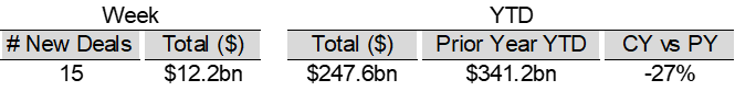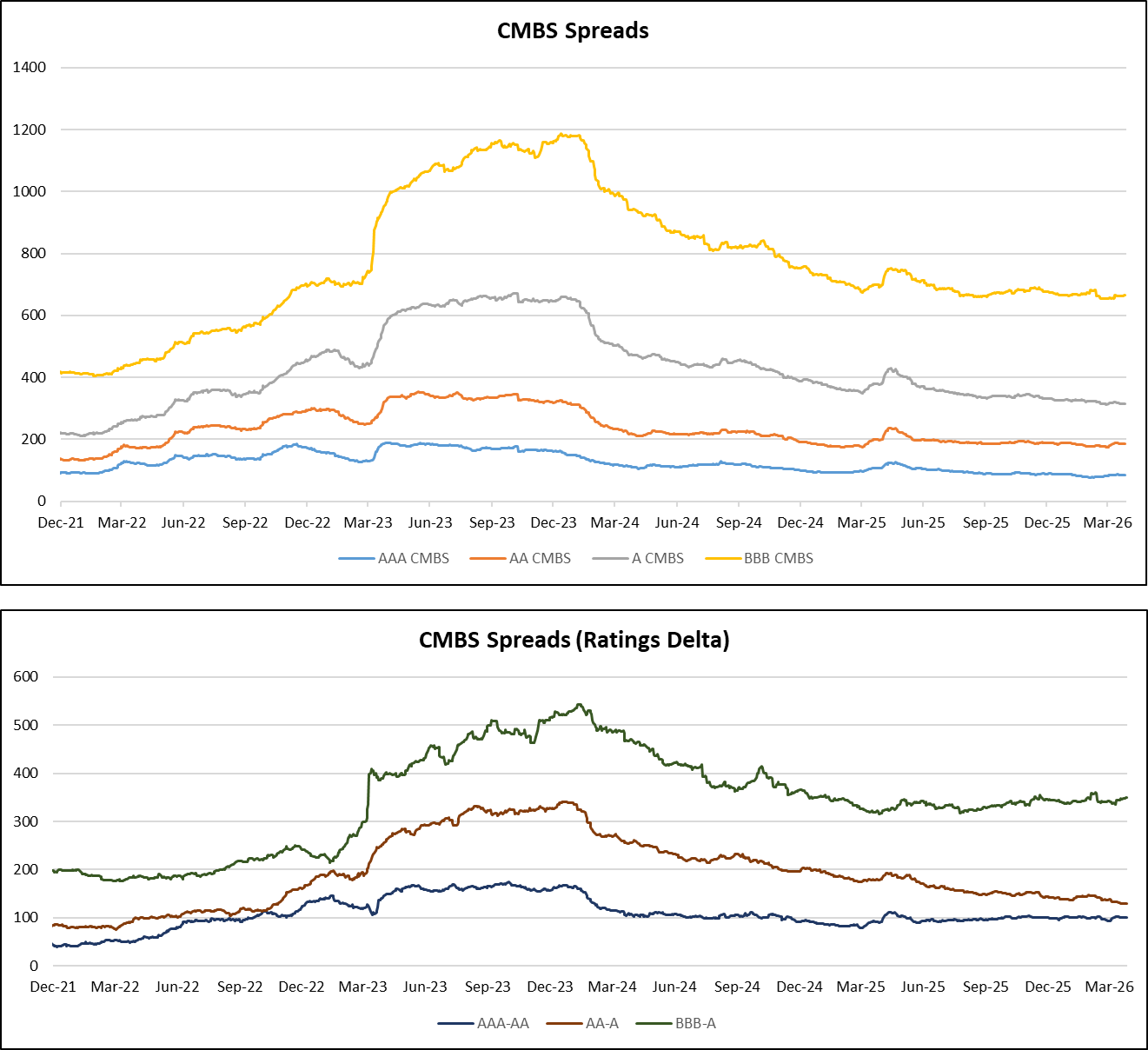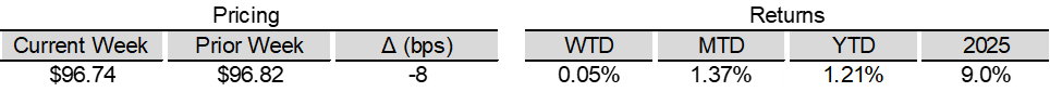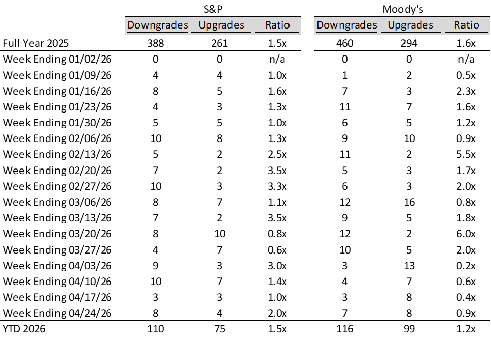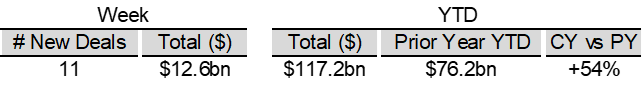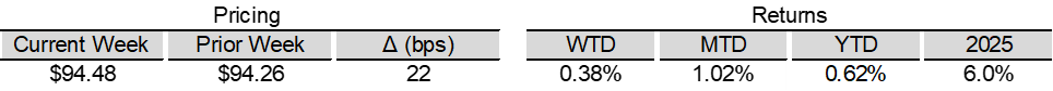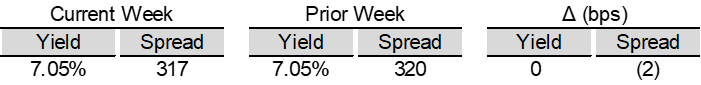 High yield bond yields stood flat 7.05% and spreads tightened 2bps to 317bps. Leveraged loan yields decreased 5bps to 8.49% and spreads decreased 9bps to 489bps. WTD high yield bond returns were positive 5bps. WTD leveraged loan returns were positive 38bps. 10yr treasury yields increased 1bps to 4.33%. High-yield spreads reduced modestly and stayed near multi-month lows, supported by strong earnings, active markets, and continued inflows despite Middle East uncertainty. Leveraged loans prices increased this week amid rising rates and oil prices, muted capital market activity, and the strongest retail inflows in 14 weeks.