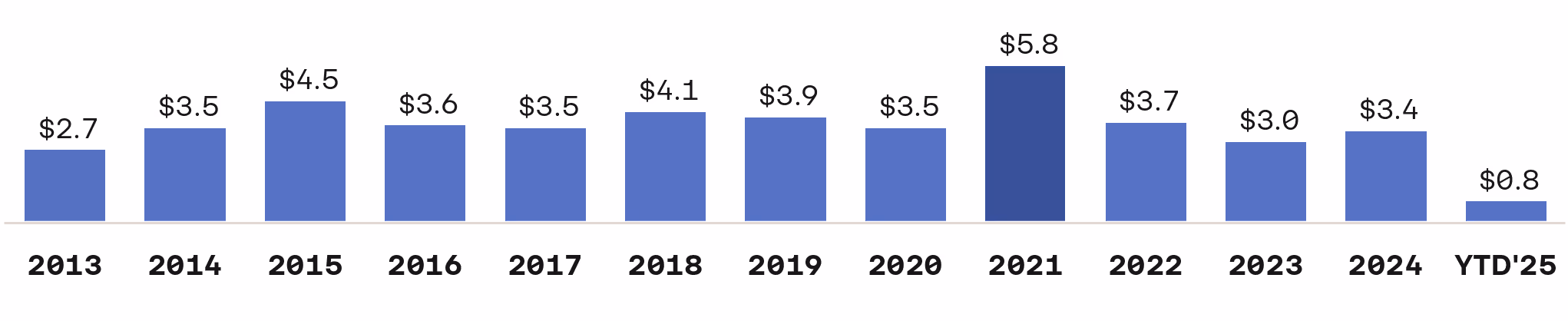 Figure 2: Global M&A Deal Volume ($ in Trillions)(2)