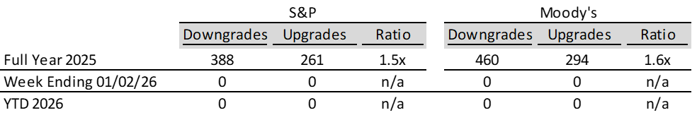High yield bond yields decreased 8bps to 6.62% and spreads decreased 5bps to 300bps. Leveraged loan yields decreased 3bps to 7.86%, while spreads remained unchanged at 455bps. WTD high yield bond returns were positive 28bps. WTD leveraged loan returns were positive 15bps. 10yr treasury yields increased 4bps to 4.17%. High yield and leveraged loans were up this week, supported by strong macro momentum as US jobless claims declined, reinforcing risk appetite.