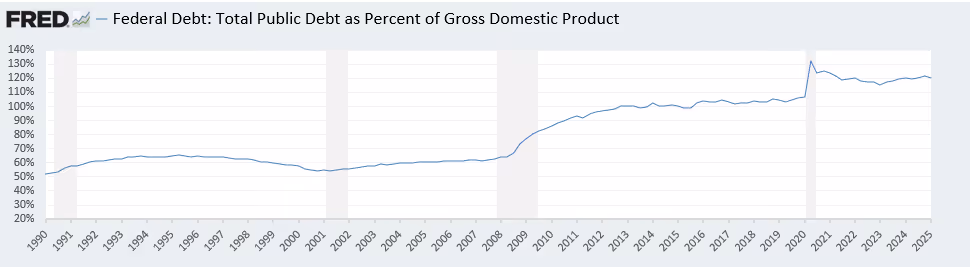 - The total public debt-to-GDP ratio is at 122.31% as of December 31, an increase of 0.87% from the previous year