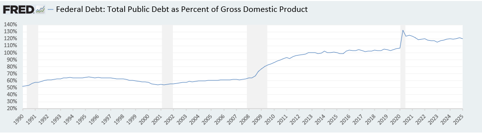 - The total public debt-to-GDP ratio is at 121.03% as of September 30, an increase of 0.86% from the previous year
