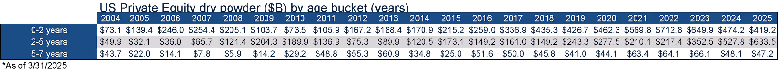 Diagram Q: Dry Powder for All Private Equity Buyouts ($B)