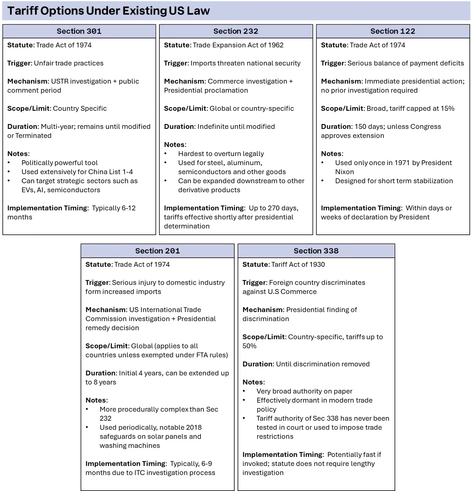 - In response, the White House signed an executive order on Friday imposing a temporary 10% global tariff under Section 122 of the Trade Act of 1974. However, on Saturday, President Trump posted on social media that the tariff would be increased to 15%. Under the statute, the tariff can remain in effect for up to approximately 150 days before requiring congressional action